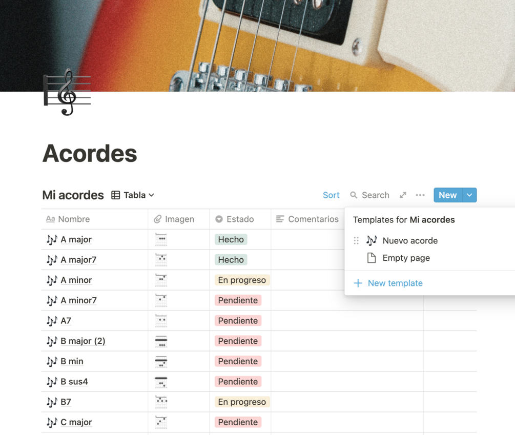 Aprendiendo guitarra Notion template